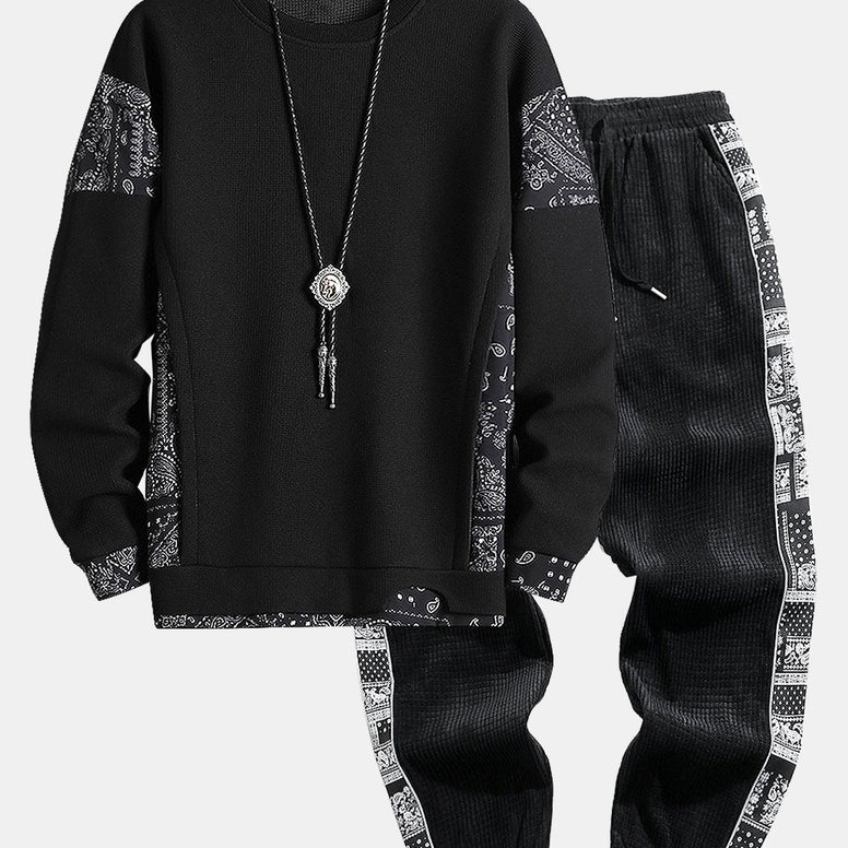 Paisley Print Panel Waffle Sweatshirt & Corduroy Paisley Print Panel Pants